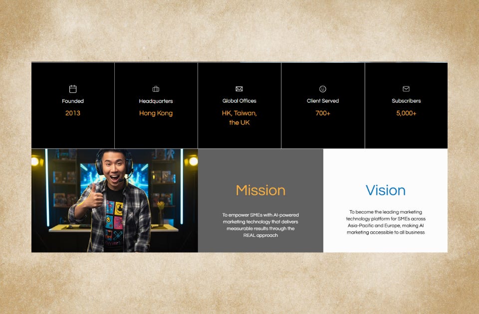 V8 Global claims to “transform your business with AI-powered marketing technology.” They’re reportedly based in Hong Kong, founded in 2013, and claim over 700 clients, yet their social media presence doesn’t reflect that. A quick scroll suggests a pivot into AI marketing.